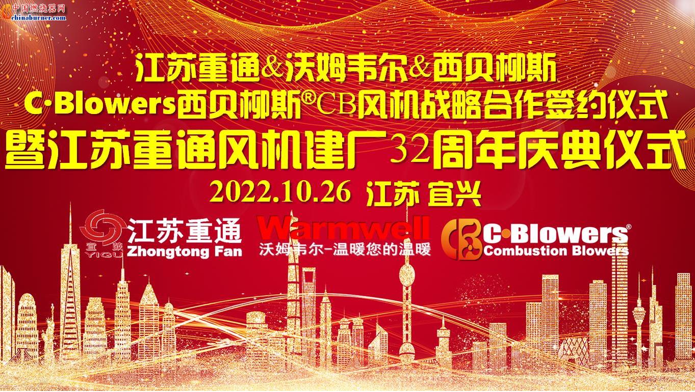 合作共贏送東風 技術升級再出發(fā) 熱烈祝賀江蘇重通@沃姆韋爾@西... 2022-10-31 2022年10月26日,沃姆韋爾科技無錫有限公司攜手C·Blowers?西貝柳斯風機(無錫)有限公司(品牌簡稱CB風機)與江蘇重通風機有限公司的戰(zhàn)略合作簽約儀式在陶都宜興工業(yè)重鎮(zhèn)徐....